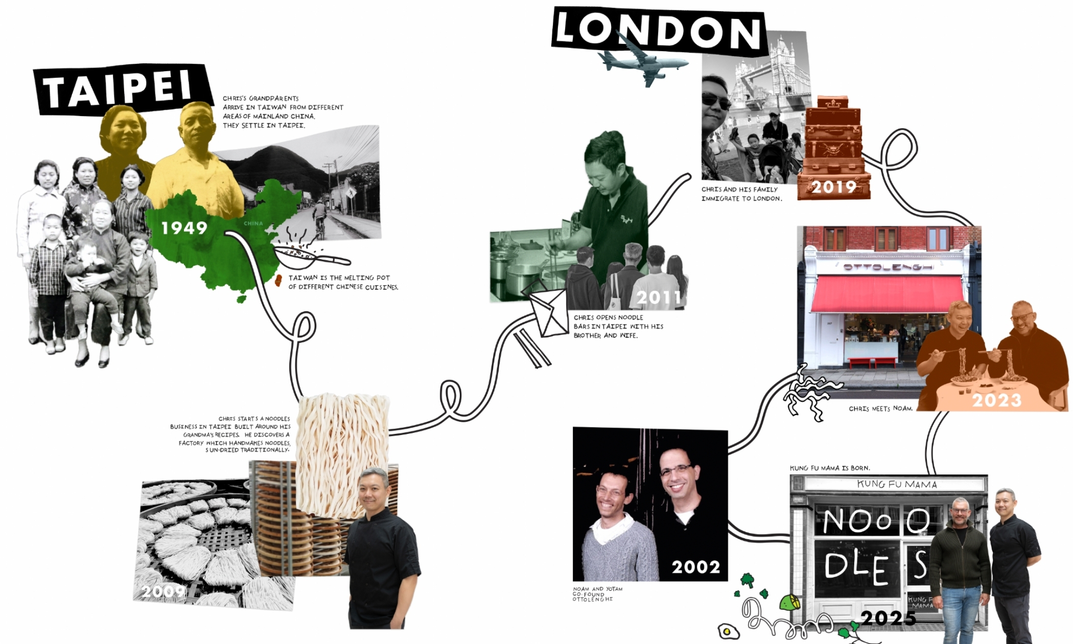Kung Fu Mama reflects the life stories of both its founders. Chris grew up surrounded by wonderful food and brought his knowledge, heritage, and passion from Taipei to London. Noam co-founded Ottolenghi, one of the UK market’s most influential food brands, renowned for its freshness, bold flavours, and health-forward approach.